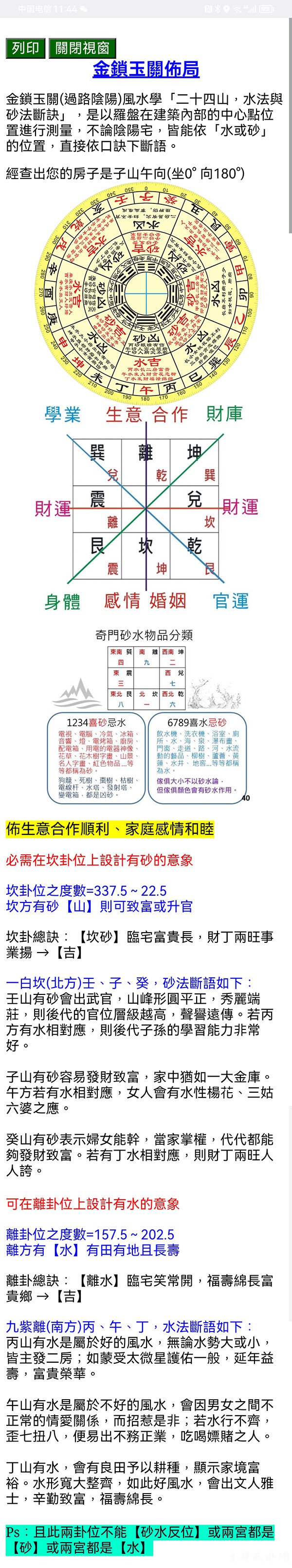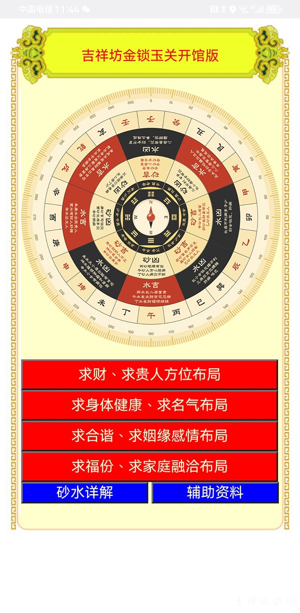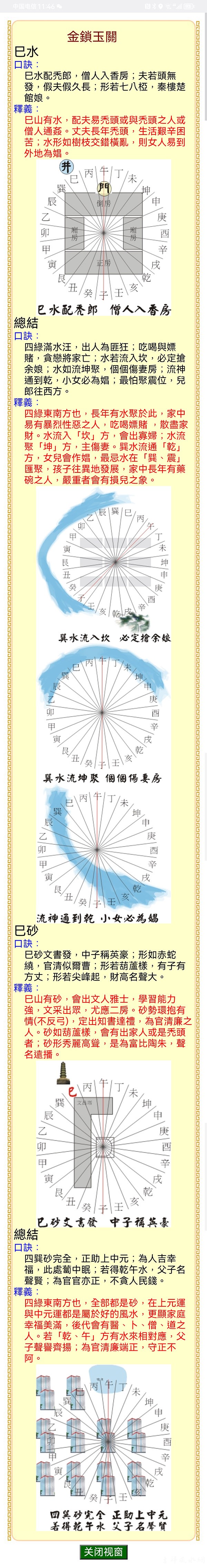 金锁玉关与阳宅诊断 这套软件是一套针对一间房子【八大方位】24山向之砂水的诊断系统,如果要诊断房子外面八方位之山水问题请站在大门口用罗盘量,如果要诊断房子内部之砂水状况,人就站在房子之正中心用罗盘量 . ...