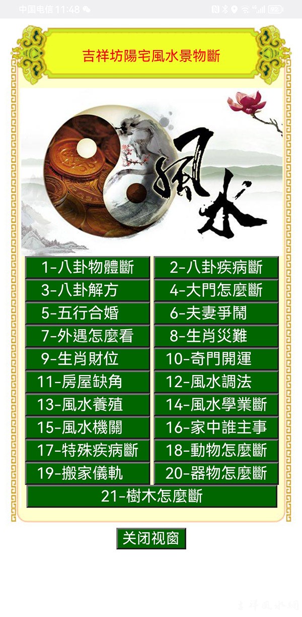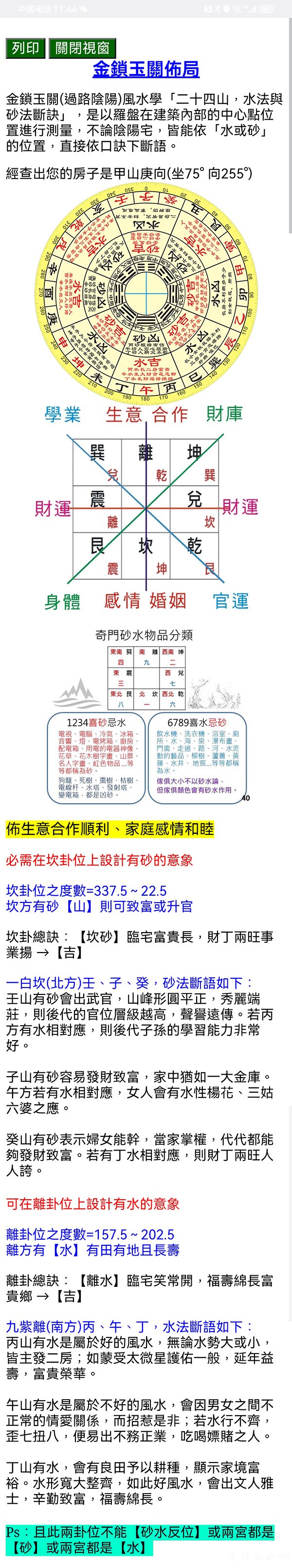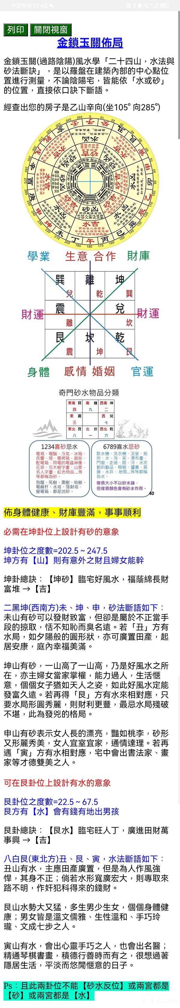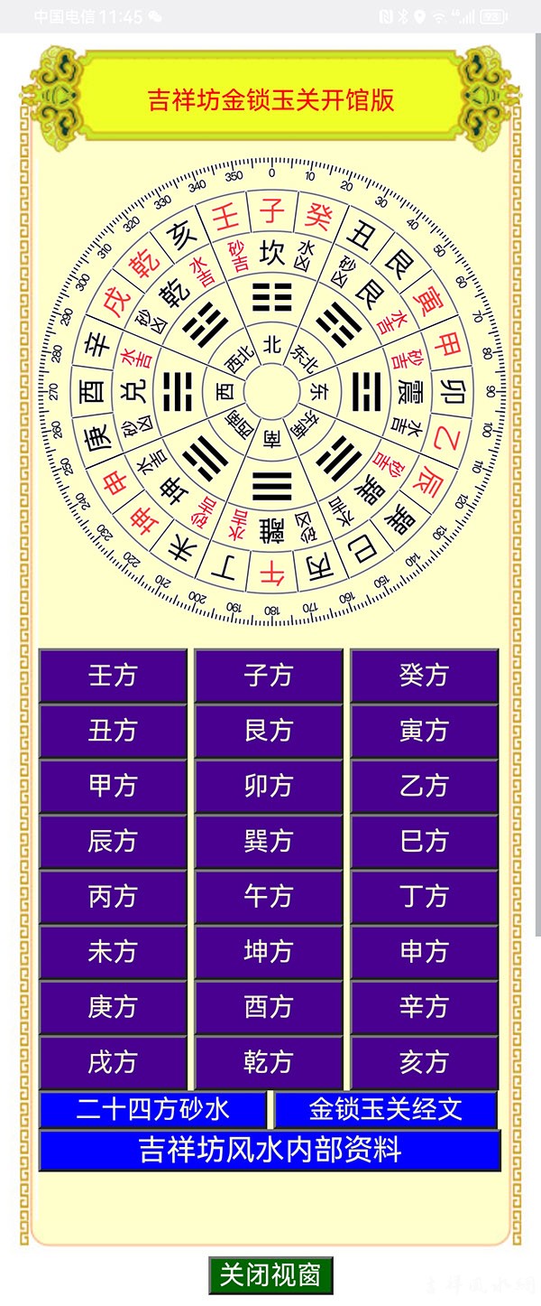 金锁玉关与阳宅诊断 这套软件是一套针对一间房子【八大方位】24山向之砂水的诊断系统,如果要诊断房子外面八方位之山水问题请站在大门口用罗盘量,如果要诊断房子内部之砂水状况,人就站在房子之正中心用罗盘量 . ...