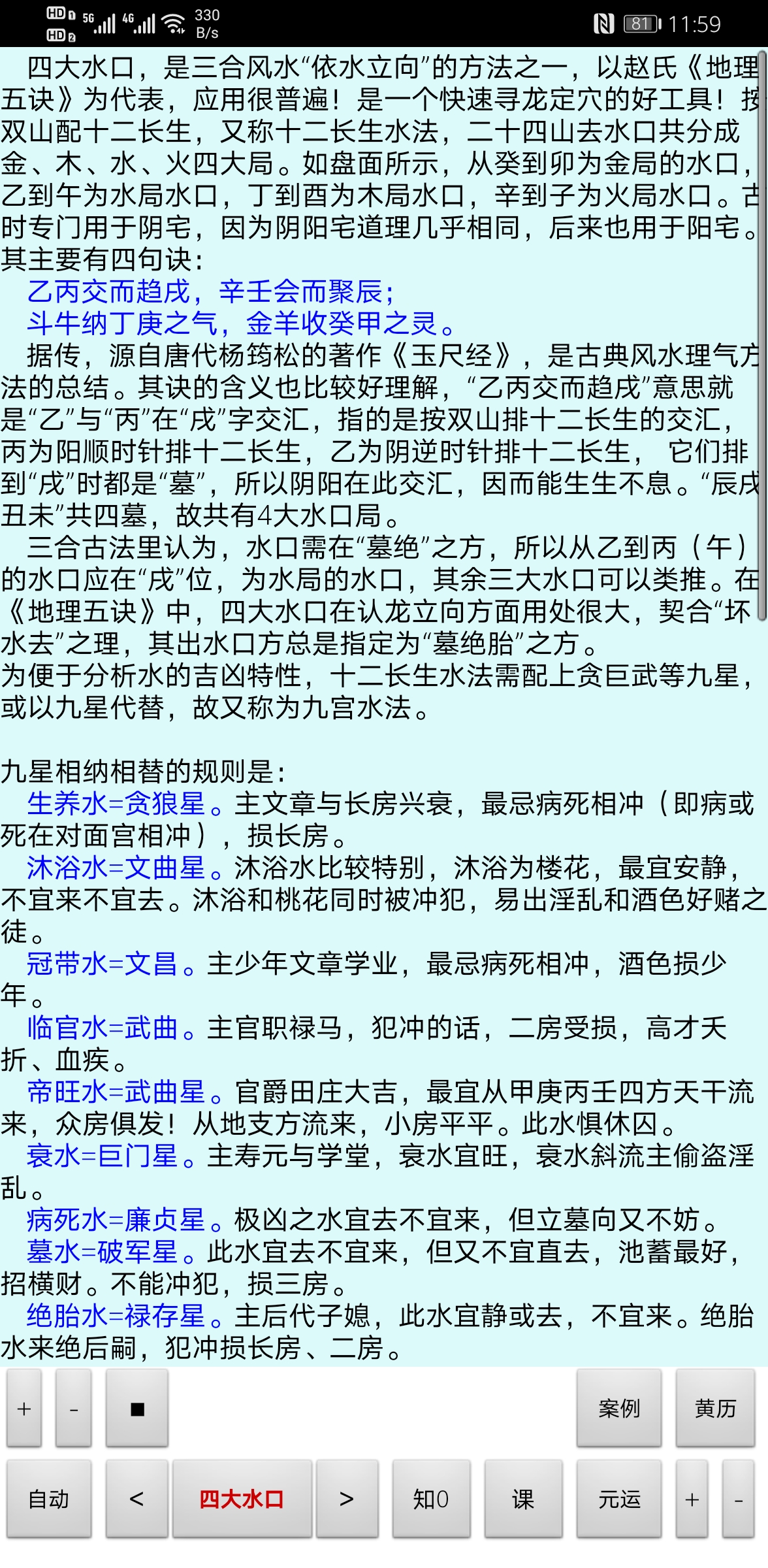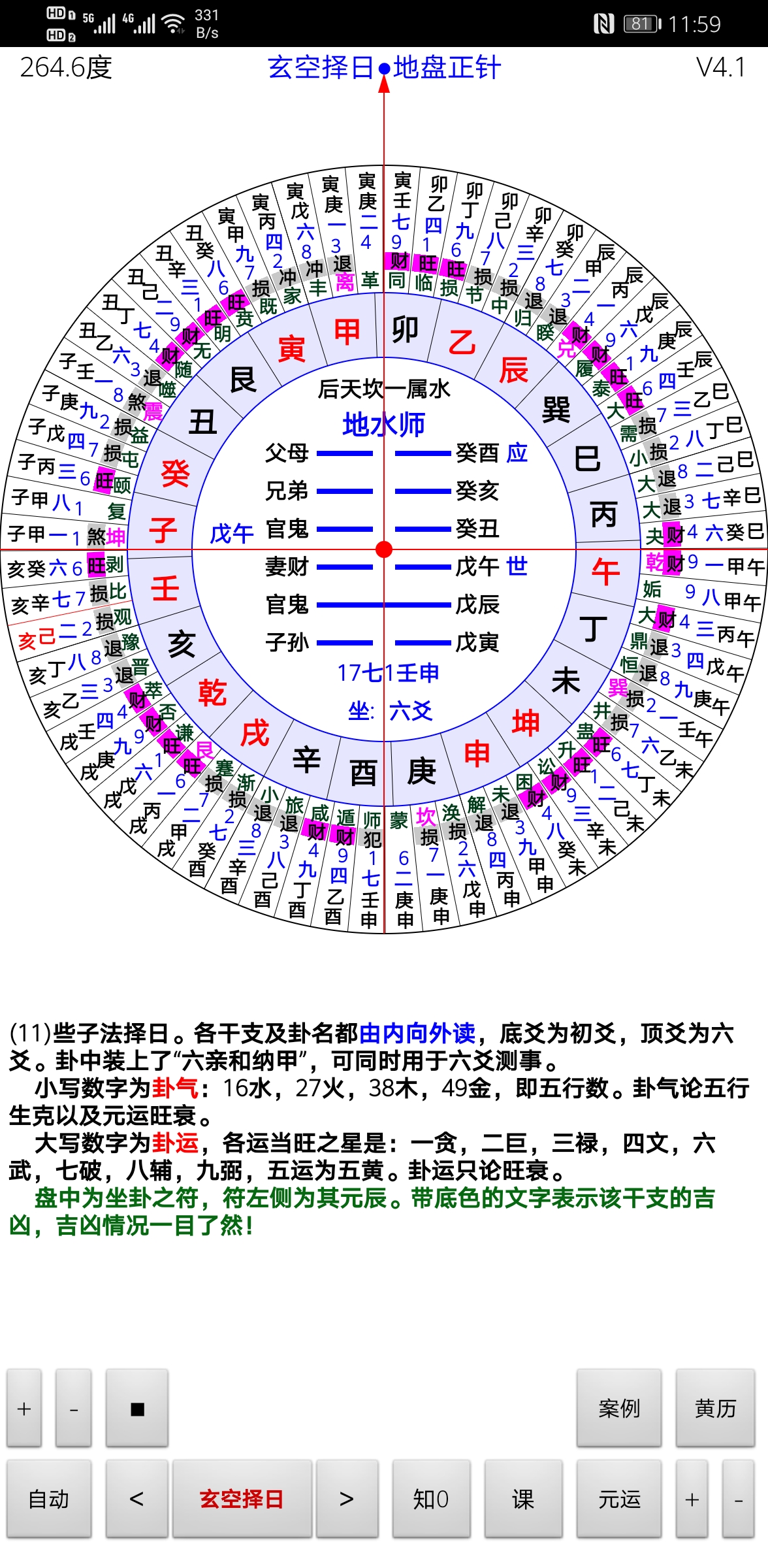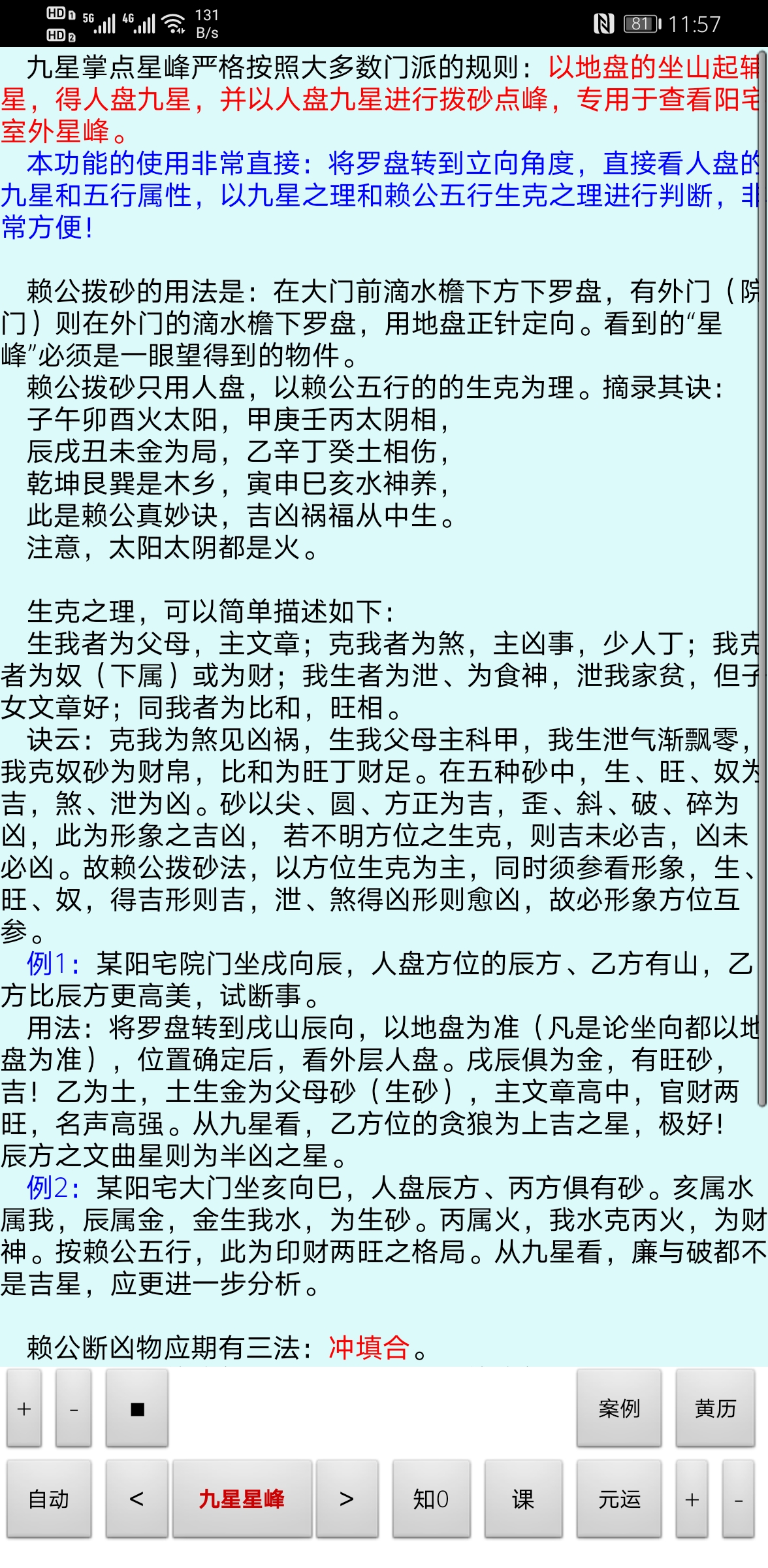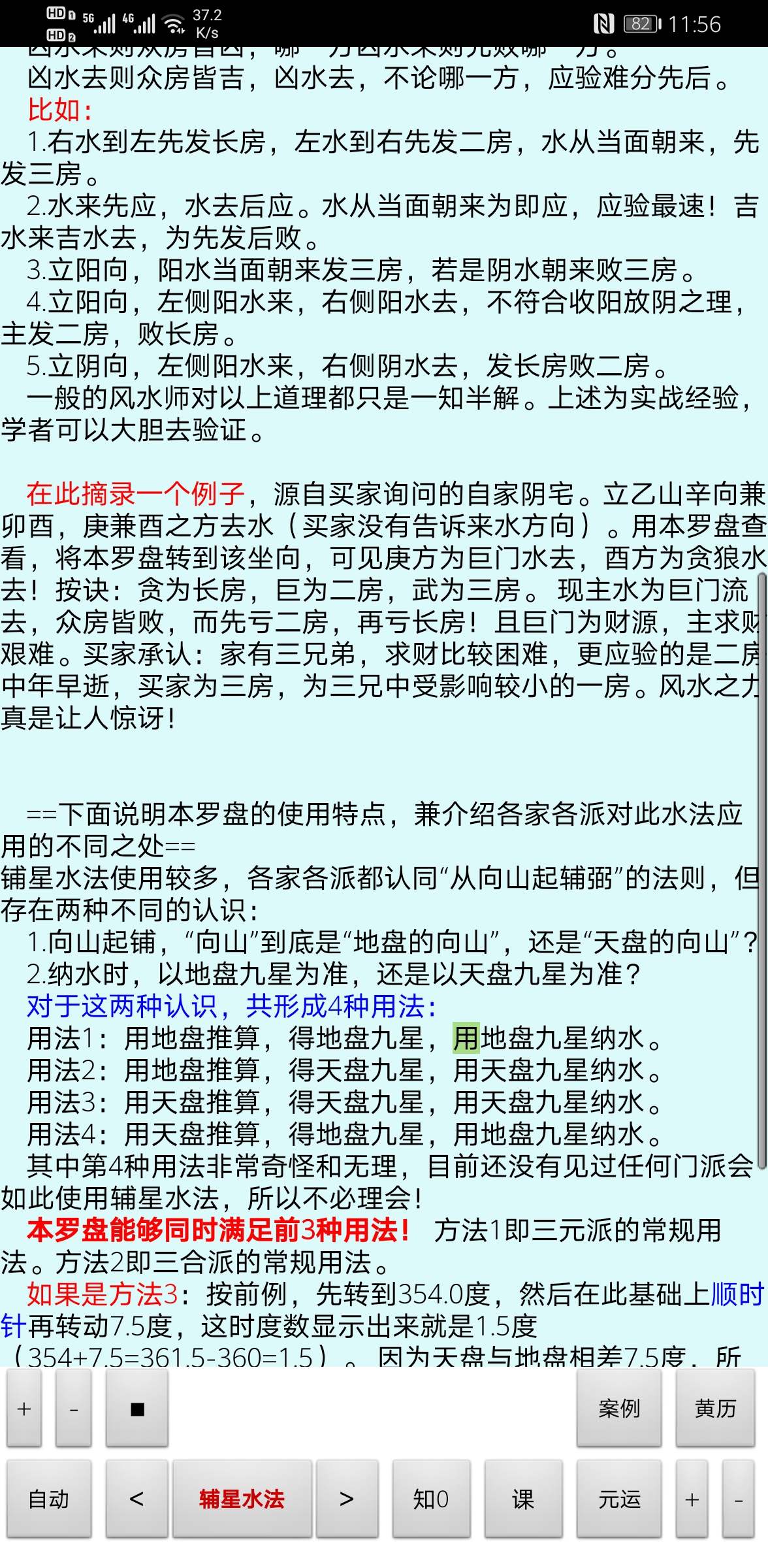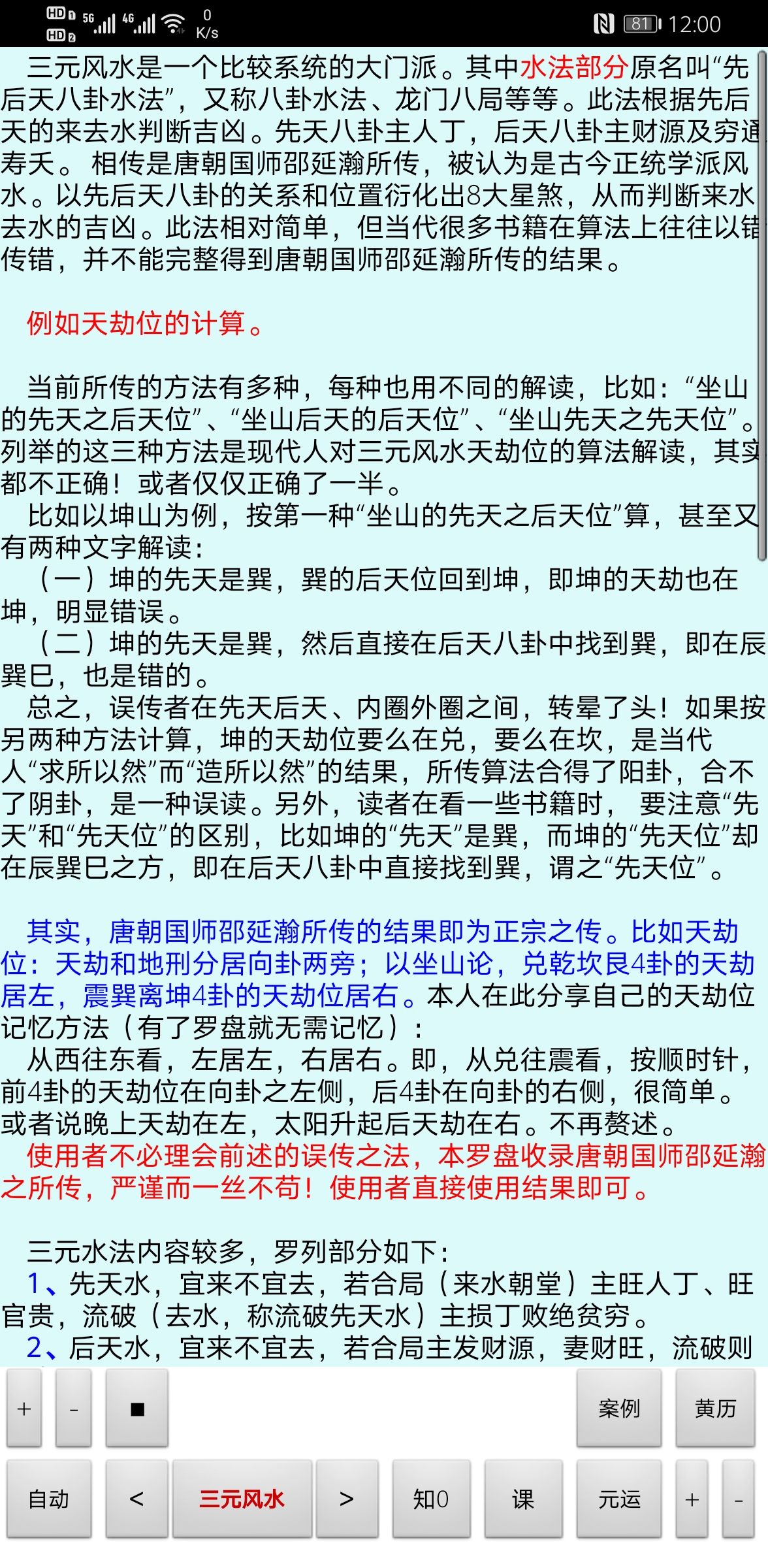 本罗盘软件适应各种分辨率的安卓手机,罗盘中每一个字,第一条线都是由代码生成,绝不是模糊的罗经图片,所以体积很小,界面精准无差!所收集的内容均为业内人士普遍认可的精华方法,比如九星掌、排山掌、辅星掌、立向分金、洪范断宅、玄空风水、 赖公断宅、纳甲择日、玄空择日、抽爻换象、天星风水、四大水口、龙虎水法、三元风水、三合水法、各类神煞等等,融合了三元、三合的内容,同时整合一百二十龙、七十二龙等等内容。