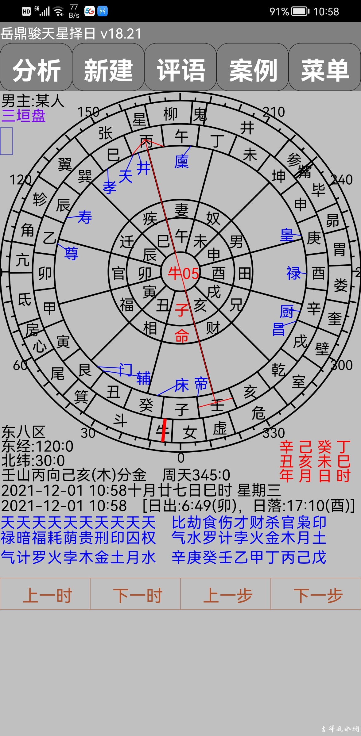 壬山丙向己亥(木)分金 周天345:0 命宫:危月05:20 亥09:07 亥山13:22 度主:月 宫主:木
