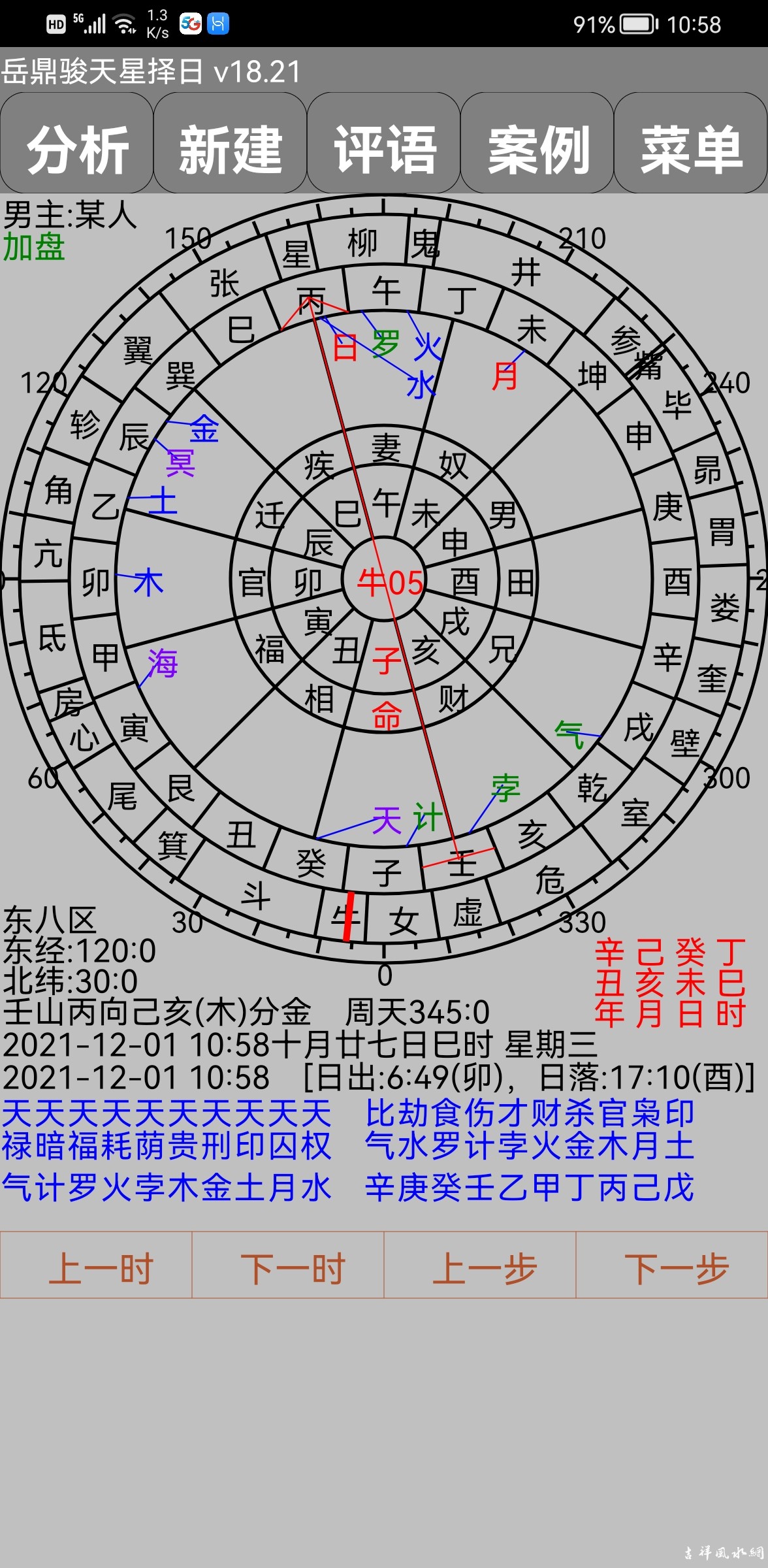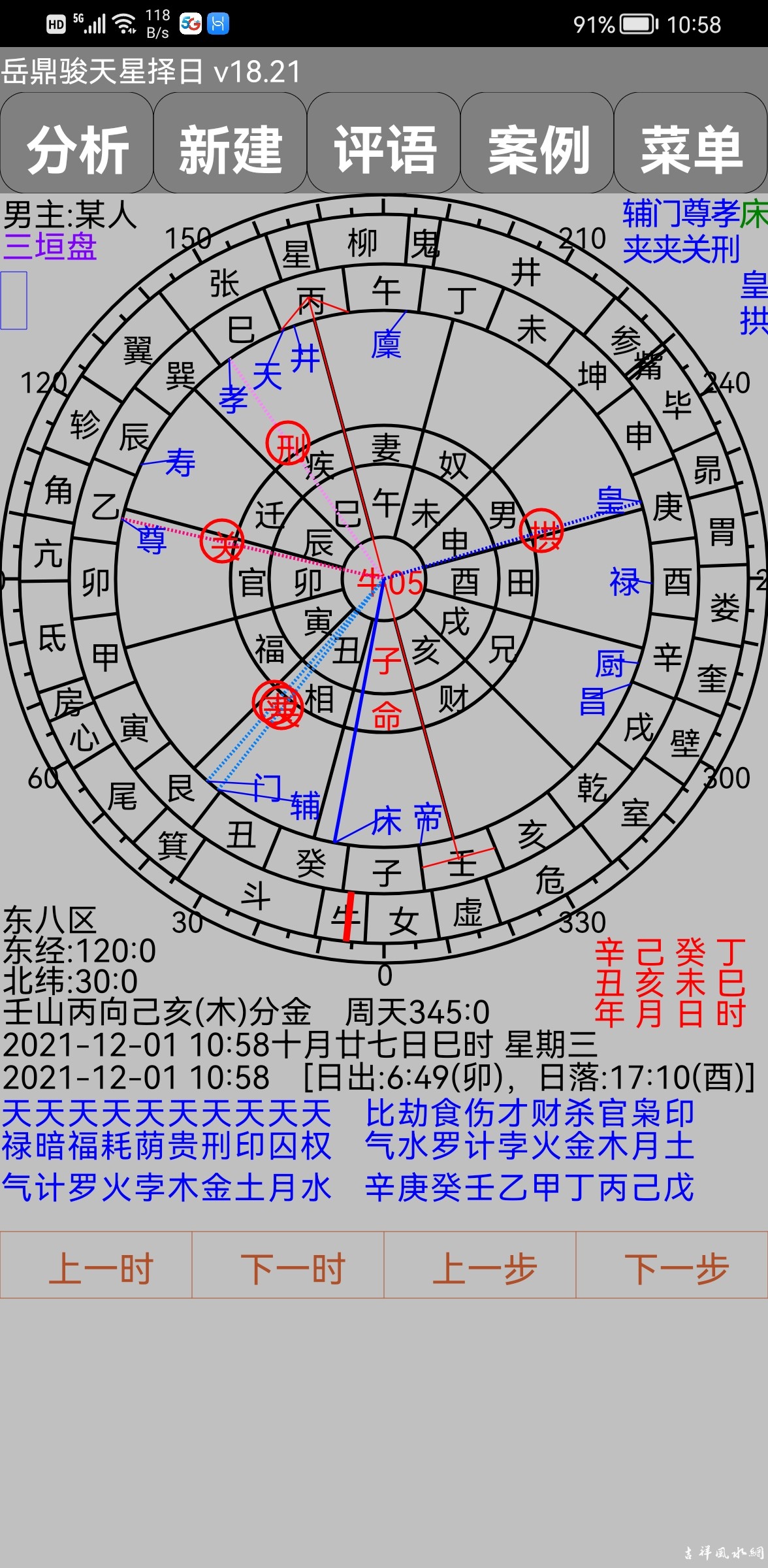 七政四余天星择日法,又称七政四余造命法,全称七政四余弧角天星择日造命法,具体的时空中存在着居于天体各位置上的日月金水木火土七政,谁把握了年月的玄机,令七政四余拱照有情,日月恩用夹拱命宫,谁就能重新改造命运,丁财两旺,富贵双全,可见天星择日法威力之巨大。 过往我们要进行天星择日,那么就需要有各种的推算过程,往往需要大量的精力来计算,有时候由于人为疏忽还容易产生错误,导致择日结果相差甚远,往往就达不到想要点效果。 现今时代在发展,我们已经可以借助软件排盘来节省大量的人工计算排盘过程,并且软件排盘推算方式与人工无异,并且结果会更加准确,不会出现人工计算的疏忽错误。 我们只需要输入相应的时间,地点,择日类型,坐向,周天度。