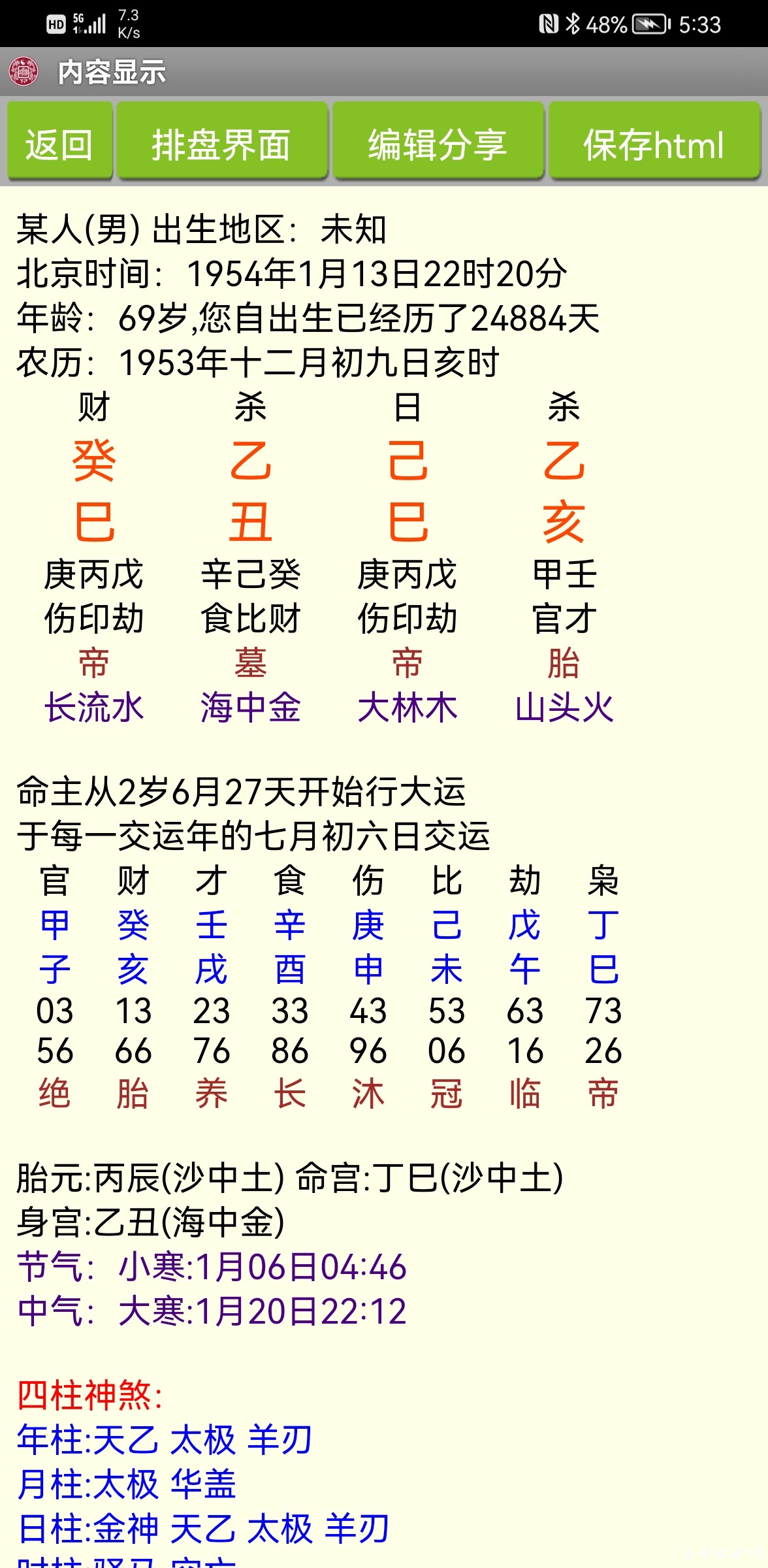 此造月支卯木为刃加3,时支寅木为禄加2,年乙木劫为1,日主1,可断兄弟姐妹7人,本人老五。