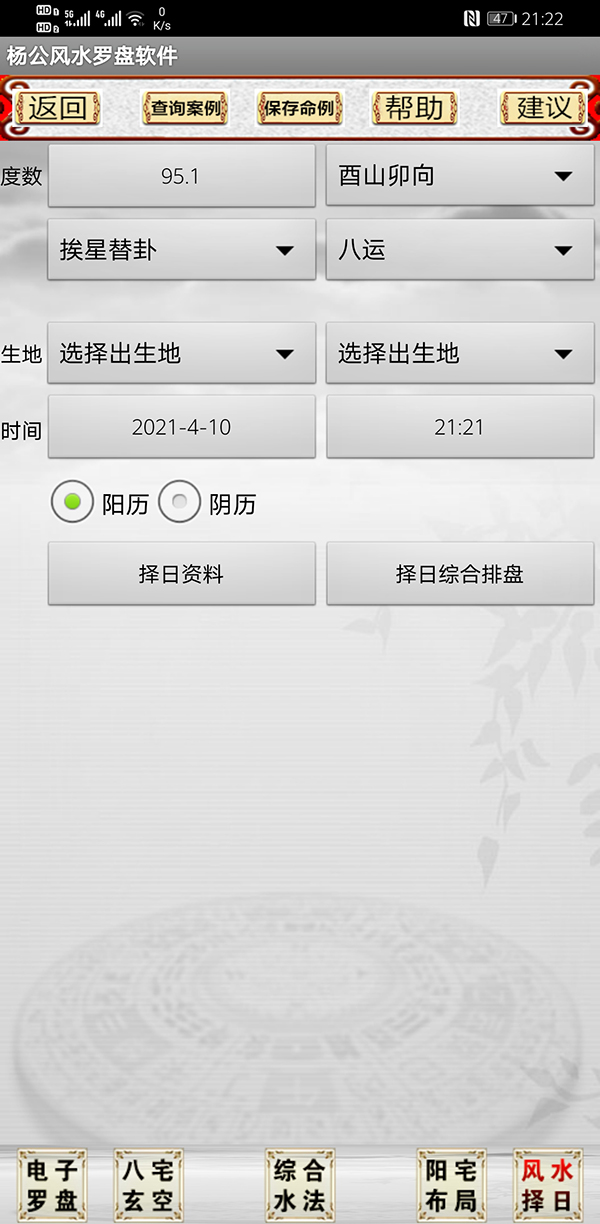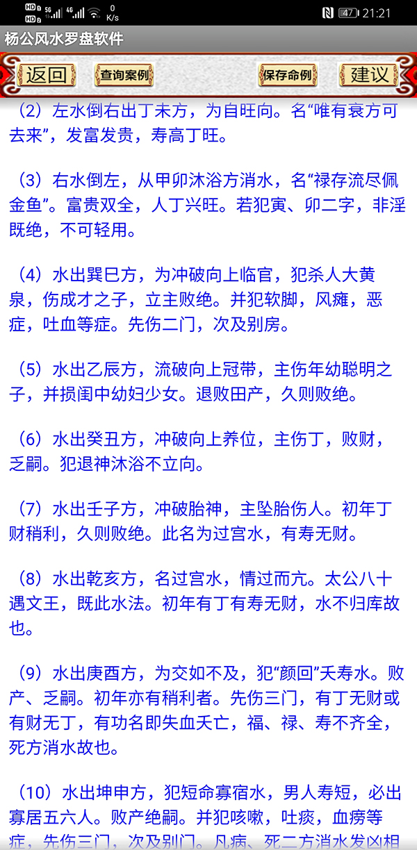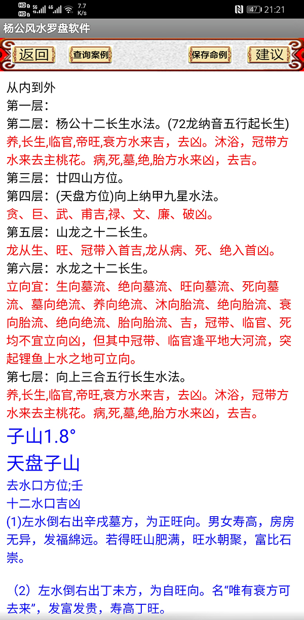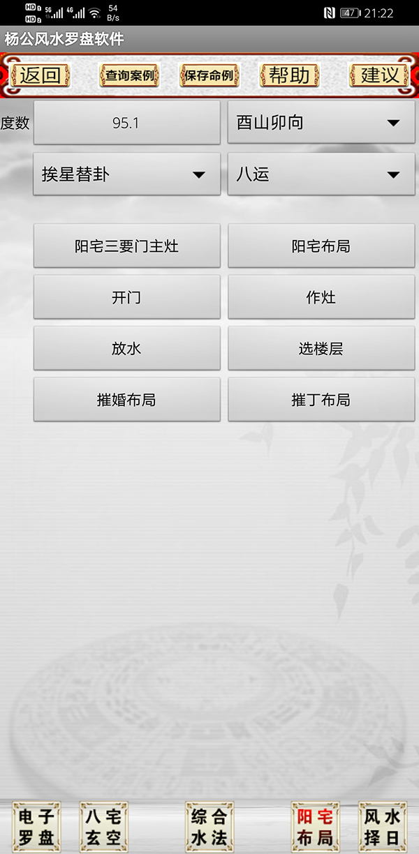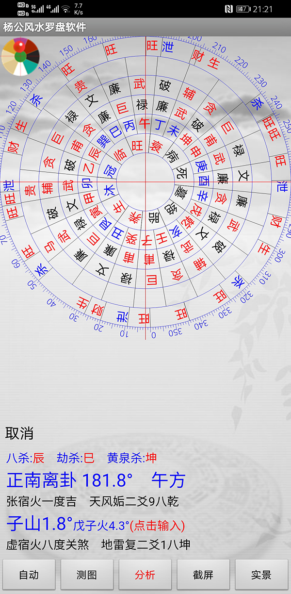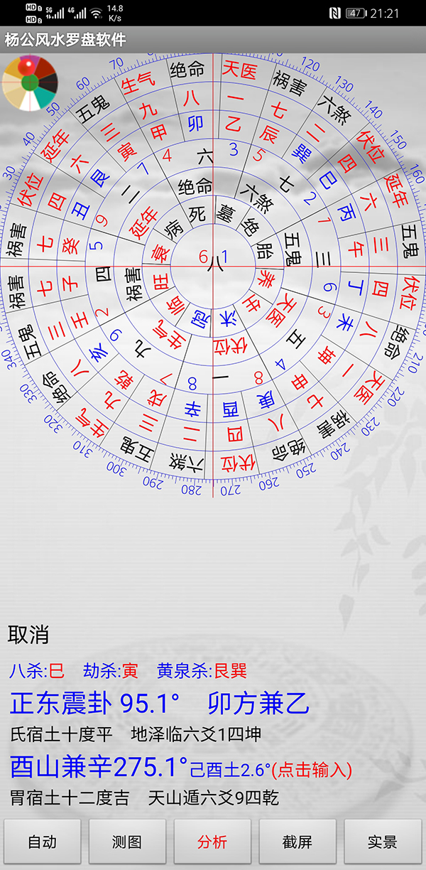 杨公风水罗盘app是一款为相信风水的朋友准备的,通过杨公风水罗盘app你可以了解到更多风水信息,同时获得更多专业的指导。 杨公风水罗盘简介: 杨公风水罗盘:利用手机的相机功能加十字坐标能精测远方建筑方向度数,排玄空飞星,八宅,九星水法,三合水法,四大局,大玄空挨星,拨砂,先后天水法,七十二龙批注,二十八宿消峰,阴宅河洛九星,二十四山分金吉凶,六十仙命安葬吉凶,杨公开门放水,过路阴阳人盘消峰,开罗经立向宜忌,简单布局测图罗盘,史公72龙正针水法,七星水法,阳宅布局,择日排盘等功能。此软件比较适合专业从事风水研究之人。 优惠价:568元 有需要者加微信gn413168 |