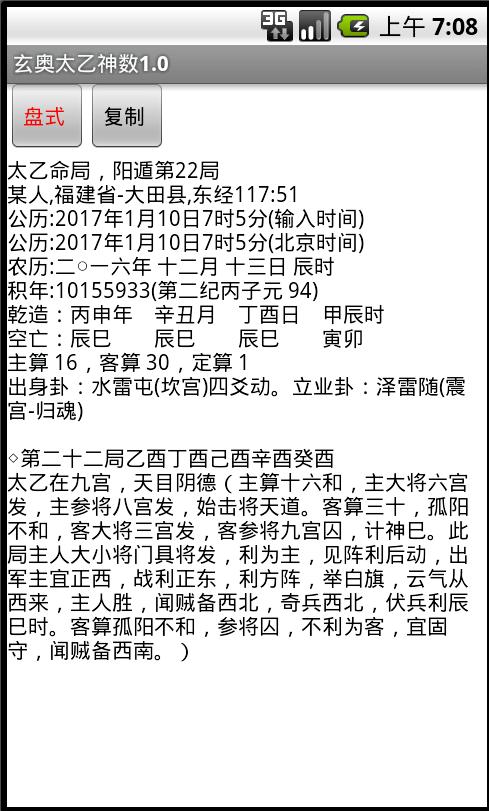 太乙号称“三式”之首,是一种比遁甲、六壬更神秘的预测术,理论研究、实际应用方面开发的很少,本软件可以计算出预测需要的参数,可以绘出年局、月局、日局、时局、命局太乙盘,直观易懂,并显示预测需要用到的数据,是命理研究者、爱好者的良好辅助工具。