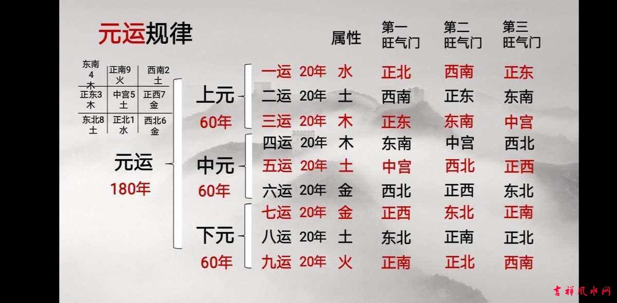 一运、九运没有旺山旺向。(全局合十)二运旺山旺向局: 丑山未向主丁财两旺,地运120年; 巽山乾向主丁财两旺,地运20年; 未山丑向主丁财两旺,地运160年; 乾山巽向主丁财两旺,地运160年; 亥山巳向主丁财两旺,地运160年; 巳山亥向主丁财两旺,地运20年。 三运旺山旺向局: 卯山酉向主丁财两旺,地运40年; 辰山戌向主丁财两旺,地运20年; 酉山卯向主丁财两旺,地运140年; 辛山乙向主丁财两旺,地运140年; 戌山辰向主丁财两旺,地运160年。 四运旺山旺向局: 艮山坤向主丁财两旺,地运100年; 寅山申向主丁财两旺,地运100年; 甲山庚向主丁财两旺,地运40年; 坤山艮向主丁财两旺,地运60年; 庚山甲向主丁财两旺,地运140年。 五运旺山旺向局: 子山午向主丁财两旺,地运80年 丑山未向主丁财两旺,地运120年; 卯山酉向主丁财两旺,地运40年; 辰山戌向主丁财两旺,地运20年; 午山子向主丁财两旺,地运100年; 未山丑向主丁财两旺,地运60年; 酉山卯向主丁财两旺,地运140年; 辛山乙向主丁财两旺,地运140年; 戌山辰向主丁财两旺,地运160年。 六运旺山旺向局: 艮山坤向主丁财两旺,地运120年; 寅山申向主丁财两旺,地运120年; 甲山庚向主丁财两旺,地运40年; 坤山艮向主丁财两旺,地运60年; 庚山甲向主丁财两旺,地运140年。 七运旺山旺向局: 卯山酉向主丁财两旺,地运40年; 乙山辛向主丁财两旺,地运40年; 辰山戌向主丁财两旺,地运20年; 酉山卯向主丁财两旺,地运180年; 辛山乙向主丁财两旺,地运180年; 戌山辰向主丁财两旺,地运160年。 八运旺山旺向局: 丑山未向主丁财两旺,地运180年; 乾山巽向主丁财两旺,地运160年; 亥山巳向主丁财两旺,地运160年; 巽山乾向主丁财两旺,地运20年; 巳山亥向主丁财两旺,地运20年; 未山丑向主丁财两旺,地运60年 旺山旺向是什么?有什么说法吗? 玄空术中,最喜旺山旺。但在三元九运之中,一九两运无当旺之山向,因一为数之始,九为数之终也。故在二运至八运,属于旺山旺向者: 二运有乾巽及巽乾、亥巳及巳亥、丑未及未丑。 三运有卯酉及酉卯、乙辛及辛乙、辰戌及戌辰。 四运有艮坤及坤艮、寅申及申寅、甲庚及庚甲。 五运有子午及午子、癸丁及丁癸、卯酉及酉卯。 乙辛及辛乙、丑未及未丑、辰戌及戌辰。 六运有艮坤及坤艮、寅申及申寅、甲庚及庚甲。 七运有卯酉及酉卯、乙辛及辛乙、辰戌及戌辰。 八运有乾巽及巽乾、亥巳及巳亥;丑未及未丑。 至若壬丙及丙壬两山向,无当旺之运。但在起星替卦中,则以六运为旺山旺向,视为挨星中之珠宝是也。抑又言之,用起星替卦而得旺山旺向者,除六运壬丙及丙壬之外,尚有癸丁及丁癸。 下卦(正向或兼线一度至二度)为正法,起星(兼线三度至四度)为变法。又有双星到向及城门一吉,若形局佳者用之,当运即发,运过即败(只得二十年内常旺)。 又有七星打劫法,乃劫取未来之气,是指元而言,非指运而言(元是三元,运是九运,即是在上元劫取中元之气,中元劫取下元之气,并非一运劫取二运之类。) 九运哪个朝向的宅运旺? 所谓当旺位置,有两种理解,一是市中心,商业城和步行街等,这是外环境(峦头)的人流量多,造成人丁旺,只是美中不足,就是利商业不利居住;第二种真的“丁财两旺”,就是座向都处于风水学的旺线上,这种旺线会令宅内居住的人连续兴旺20年。 大家知道,地球是太阳系的一个星球,而太阳的周边环绕着八大行星,而当中以木星和土星影响力最大,木星每隔11.86年绕太阳一周,土星每隔29.46年绕太阳一周,土木星要二十年才能相会一次,当相会九次之周期刚好是八大行星成一直线的时候,此种天星现象,风水学家用数字表示,称“三元九运”。 三元九运是循环的,地球经过了无数次三元和九运,现在我们的地球正处于风水学家说的“下元八运”时期,简单来说,就是我们的房子从阳历2004年2月4日到2023年2月3日止,风水效应在八运线位上。 八运中哪个方向是最旺的一个方向呢在八运中,东北是最当旺的,其次为正南,再次正北。整个大厦朝向为这三个方向的自然可以上佳的选择。同时也要考虑大门的门向,因为大门是用来迎吉的,也是用来纳气的,所以大门的方向也很关键,所以如果大夏门向也为着三个方向的,坐向又是你的行运方位的屋宅,自然是最能旺你的屋宅。 具体怎样根据八字中的喜用来确定坐山呢 一般说来,就是八字中喜用为甲乙、寅卯的坐山就为正东;八字中的喜用为庚辛、申酉坐山就该选择正西;八字中喜用为壬癸,亥子的人,坐山就要选择正北;八字中喜用神为丙丁、巳午的人,坐山就要选择正南。八字中以辰戌丑未为喜用的人,坐山就要选择西南、西北、东南、东北这些方位。这八个方位中每个方位均有三山可以供你选择。 一般说来,子、午、卯、酉四正的方位,不是我们平民百姓的选择;除此而外,当然也要结合自己幸运的坐山在“三元九运”中的旺衰、山与向的搭配、栾头形势的影响来综合判断。但是总的说来,坐山必须为自己八字中的用神、或者喜神方位,这样的房子才是适宜自己的最佳住宅。 所谓好风水的楼房,最基本的条件就是坐向当旺,也就是人们常说的“旺山旺向”。 首先的关键还是要找到适合自己的幸运坐向,也就是怎样的坐向才是对自己是最适宜的。 这个问题,还是离不开你的八字,坐的方位,必须是你八字中的用神或者喜神,当然属于自己的用神,尤其是第一用神的方位才最佳。 因为这个用神,是你八字