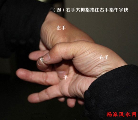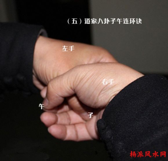 我们很多修行人,打坐修炼时手会掐诀,他们掐的都是「子午诀」,为什么叫「子午诀」?因为无名指的指根这个地方叫子,中指尖这个叫午,所以修行人用右手的食指和拇指掐住左手的子位,然后左手拇指掐中指指尖处,然后翻过来放在腿上,这叫「子午诀」,道家真人「手一支」都是这个掐法。 「子午诀」的作用是什么呢?它的作用是「镇惊辟邪」。一旦修行人受惊,手就自动的掐紧了,这掐紧就能够保护我们人的中枢神经,所以这是一个保护装置。 还有一个作用就是「制幻」,掐住这个诀幻觉不容易出现。 当今许多人学习道教静坐,但是往往苦于念头难除,及无法得气,其实这与静坐时的手印要诀,存在极大关系。倘若得法,则易收到事半功倍的效果。由于道教修炼的手印,自古以来都在师徒间秘密传授,因而世人罕知。为了使大家不再疑惑,现在打破框框,将其中要诀,详细公开于此。 修炼时双手结印,道教称为「掐诀」,又称「抱诀」或「抱印」。修炼手印,称为「太极阴阳八卦连环诀」,又称「太极诀」或「太极印」。 具体做法是:两手掐诀之时,男子以左手虎口,抱右手四指(女子右手虎口,抱左手四指。因为男子左手为阳,女子右手为阳,故以阳手居外,而阴手居内),而以右手虎口,抱左手大指(女子以左手虎口,抱右手大指)。同时,两手大指梢,各自接触另一手心的劳宫穴(在手心正中凹陷处)。 这样两手拇指在虎口形成「太极图」形状(大指相互在另手的手心,就是太极图的两个眼睛,用来接通自身阴阳二气),其余四指代表「八卦」,两手一阴一阳,故此称为「太极阴阳八卦连环诀」。如是阳手护阴手,阴手抱阳手,即是《道德经》「负阴抱阳」之义。 两手合在一起,就象接通了电源的正负极,阴阳二气自然接通。而且阴阳结合之后,马上就会形成一个封闭的气场,心情自然平静下来,两手迅速感到发热发胀,奇妙无比。如此心自然静,念自然停,身自然安,气自然行,对于静坐修炼有不可思议的效果。 不惟如此,即在平常工作和生活之中,如果有片刻清闲,或者在地铁和乘公共汽车之时,两手结印,平静养神,亦常常出现神奇的效果。但是坐车的时候要注意,不要因为入静,而坐过了站。 盘腿的方法,一般人认为五心朝天」的坐姿最好,其实这种方法的最大作用,在于稳固不倒,坐三天、五天甚至一个月,都不会倒。但是一般人,如果不是专门修炼或者闭关,没有必要强制自己,把两条腿压得生疼,来学习这种坐式,不光难以入静,弄不好容易把韧带拉伤,反而多走弯路。 盘腿的目的是为了修炼,而修炼不是为了盘腿。所以我们提倡自然的方法,两条腿可以单盘(即一条腿压在另一条腿上),也可以便盘(即两腿交叉),盘坐困难者可先在座下垫个枕头;如果盘腿太痛苦,也可以平坐凳上,小腿垂直于地面,或者交叉亦可。 但是无论如何盘腿,都要注意手和脚是相反的。即男子结印左手在外,而盘腿时右腿在外;女子则相反,结印时右手在外,盘腿时左腿在外。女子丹法,亦有专门的「跨鹤坐」式,亦遵此原则。 道家子午诀 此为道家「安神祖窍」修法的筑基。一般采用盘坐式:盘膝稳坐,左腿向外,右腿向内(左为阳,右为阴。左腿舒展略向外,右腿卷屈而向内,此为阳抱阴)。也可采用自然端坐。 左手大指,捏定中指。右手大指,进入左手内。(左手拇指掐本手中指尖为午诀。右手拇指从左手虎口插入,按在左手无名指指根处为子诀,其余四指合抱在外)。 右手在外,左手于内,为阴抱阳。此名子午八封连环诀。 结印后,放置腹前。大约于肚脐上一寸五分位置,离体约一拳为余为自然。 一切以自然松静为宜。如果你所学功法要求意守某一特定位置。私下建议:不如不守,似守非守即可。 如果此印实在不好结,采用握固印:两手拇指分别入掌中,其余四指握拳而印,分别放置两大腿弯处(腹股沟侧)。卧功修炼时,放置于体侧或肚腹部(肚脐外开各二寸左右即可)。掌心向下会自然些。 道家丹功,古时称玄功。武当内功,是以性命双修入手,经过修炼,达到平阴阳,调气血,打通大小周天,内丹大成,祛病延年,健身长寿,以终天年的目的。此即古人称的「得道成仙」。 武当百日筑基功,也是练好武当武术的基础内养功,是十分重要的配合功法。 武当内功共有四步功法,即练精化气,练气化神,练神还虚,练虚合道。这几层功法一层比一层高妙。 |