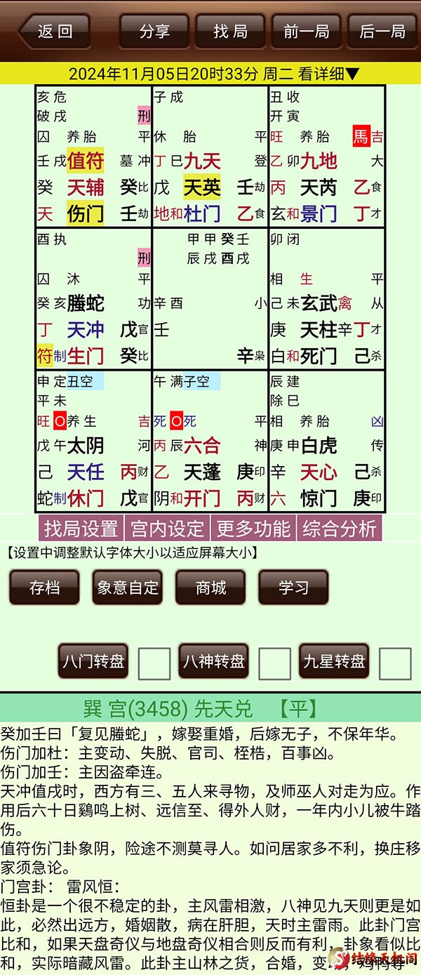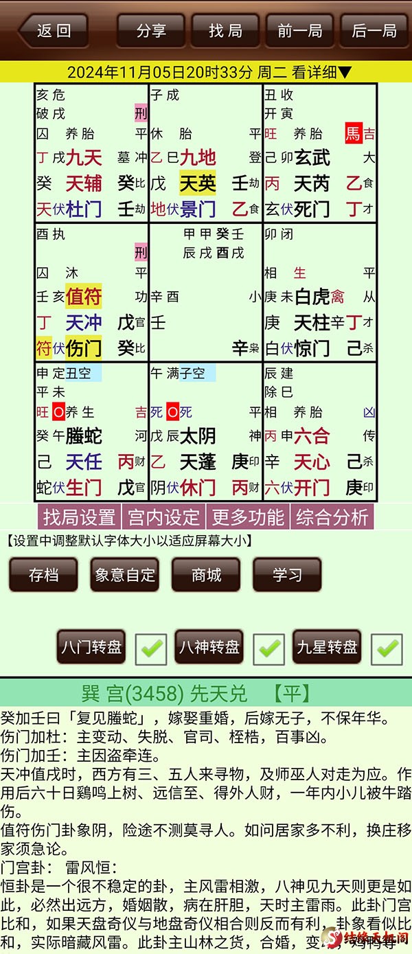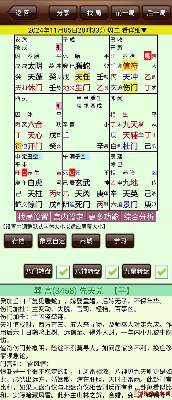 版本:5.8 android版运行系统:android 1.6以上所有版本说明:支持拆补,置润,茅山道人,转盘,飞盘的排盘功能,并且支持简体和繁体切换。