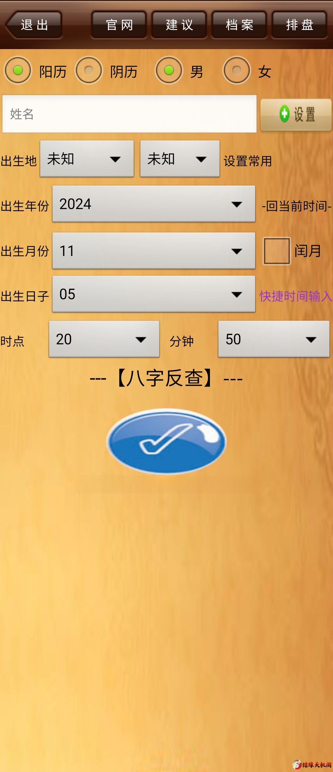用于八字排盘,无需查资料,阳历,阴历,真太阳时,简单动动手指完成排盘,简单明了排八字,方便快捷,特有时辰吉凶,择时一目了然。