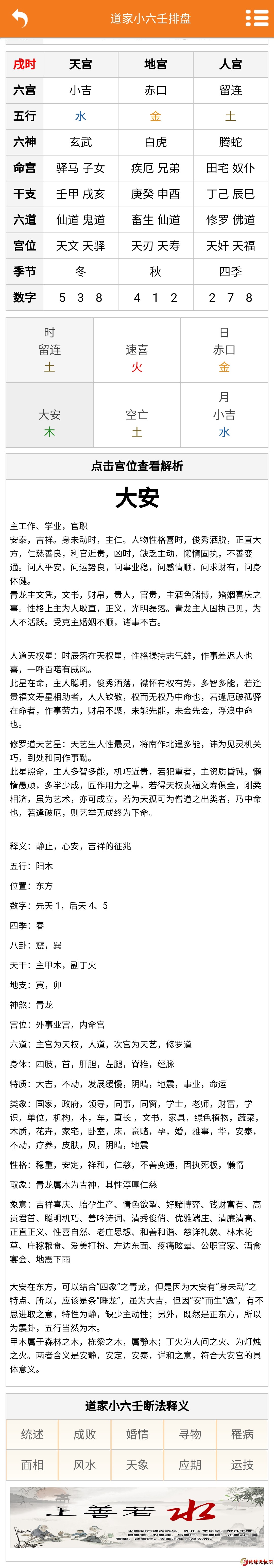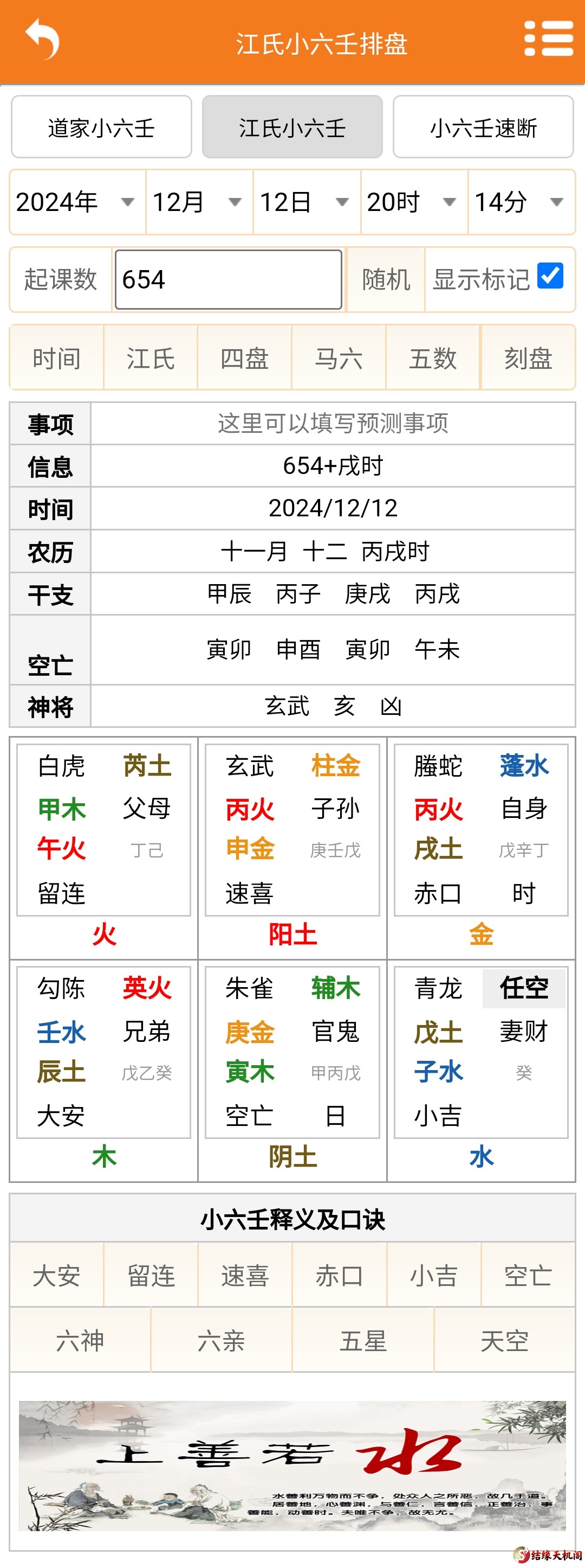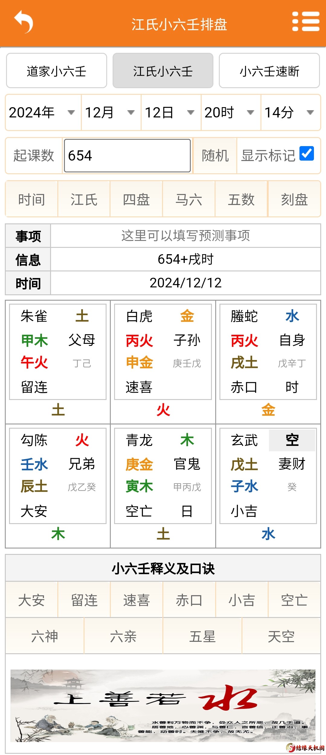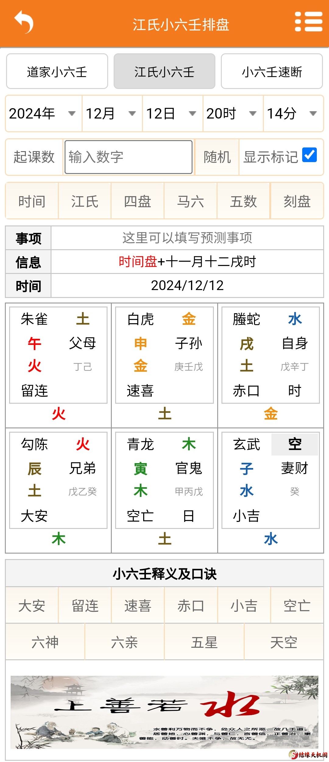 软件包含道家小六壬,江氏小六壬(时间排盘,四盘,马六,五数)小六壬速断等功能。
