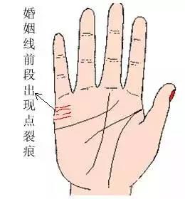 婚姻线又名爱情线、结合线,是观察结婚对象好坏,或者结婚后是否幸福的部位,在水星丘侧(小指根部掌边),感情线上方,所刻划的短短横线,有时出现几条,但以最长最明显的一条为准。 婚姻线深浅代表什么? 婚姻线中出现深长线条的你,多半已和异性有夫妻之实或较亲密的接触,只是缺个婚姻之名,不然也是生理发育已趋成熟,可以进入婚姻状态的象徵,万事俱备的情况下,只待自己做好心理準备,愿意对自己一声令下,要结婚不是问题。 婚姻线浅薄,是婚姻不太成熟的象徵,对爱情不太关心或追求异性缺少耐心,不然就是和异性仅仅处于爱慕,以及生理发育尚未完全的状态,因此往往迟婚,这种手相的你,不论在心理生理上,想婚须更培养家庭的责任心和概念,以及担当的能力喔。 没有婚姻线预示着什么? 1、异性缘较差 有两条婚姻线预示什么? 1.两条平行的婚姻线 小指末端至感情线之间,有两条婚姻线,并且双手都有这个现象的人,一般都被视为婚姻比较曲折的人,长期分居后重聚的也有可能归为此类型。 但其实婚姻线条数并不代表真正意义上的结婚次数,只要婚姻线红色并且深刻清晰,代表着婚姻健全,具有两条婚姻线而婚姻理想的人占据了相当大的比例,所以在手相学上,两条以上的婚姻线反而是理想型的,是否会有多次婚姻还需结合三大主线,特别是感情线综合判定。 如果有一长一短婚姻线的人,说明这个人的手相婚姻不顺,就算是勉强结婚在一起,也是心里不安逸对方,到最后难免也会离婚,或者夫妻之间要分居状况发生,也有再婚状况发生。