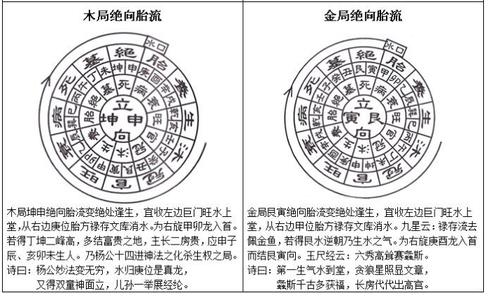 凡立四绝向墓流,宜右水倒左到堂,归本库,如绝向胎流,宜变绝处逢生,收左边养水过堂出胎位消水之法。绝向绝流,先收右边生旺官禄次,收左边养水。由天干当面屈曲出水,若百步能关闭转折大吉。诗曰:绝向绝流不为真,更要归库辨龙身,先收右水朝山现,定主富贵万年兴,右旋绝向归胎去,旺龙入首要知音,前朝砂案文峰现,一举成名报双亲。 四大局绝向水法公位断: 绝向来龙入旺神,左宜衰旺暗拱缠,右要养生大水到,或归绝位或胎津,后归本库长先发,二三两房发不停,临官结龙仲孤伶,若有出胎不归库,长荣小房怨财丁,也有绝向变长生,右水沐生倒左行,绝水特朝归衰病,长二三房都吉庆。 |