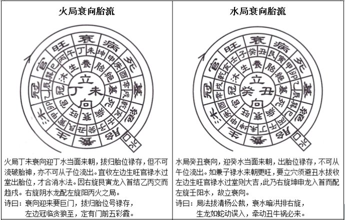 凡立四大衰向,若有衰水当面来朝出胎位禄存消去,宜左水倒右天干流去方妙。 诗曰:衰向逆朝水来归,窍通胎处是真情,横龙逆结水倒右,百步归库玉堂声。 衰水向公位断法: 衰向生龙入首关,本身莫出下砂拦,前来旺水从衰进,左会长生冠禄还;同出胎方归本库,房房兴旺齐福升,若无冠官生衰水,二三财旺长孤伶;衰水漫漫生旺缺,三列朝班长二停,孟兴仲次季平安,帝旺之玄曲进栏; 流入养家长二量,三房初败后观荣,也有衰向结墓茔,衰旺官方出病津,二三两旁皆兴旺,长房初淡后无人; 病向若有病水入,马上斩头福禄轻,二房稀少三平稳,长子人财化作尘;下砂须平右耳高,最喜桃花入首度,长三兴旺二稍薄;下臂若低三子痼,三房初败后亦荣;下臂太高福不确,久后三房过平平,长子无财家首落。 |